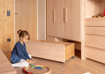 Ein Kinderzimmer vereint Abenteuer, Ruhezone und Platz zum Wachsen. Mit natürlichen Materialien, zeitloser Gestaltung und durchdachter Planung schaffen wir Räume, die Sicherheit und Geborgenheit vermitteln und gleichzeitig mit den Bedürfnissen Ihres Kindes mitwachsen. Dank individueller Gestaltungsmöglichkeiten und präziser 3D-Planung entstehen flexible Lösungen, die sich über viele Jahre hinweg an neue Lebensphasen anpassen lassen.