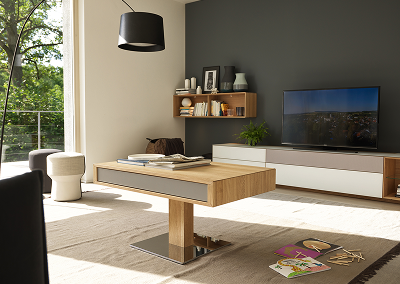 Massivholz bildet die Basis vieler unserer Wohnzimmereinrichtungen. Die natürliche Maserung, die warme Ausstrahlung und der angenehme Griff machen jedes Möbelstück zu einem Unikat. Holz aus nachhaltiger Forstwirtschaft sorgt zudem dafür, dass Ihr Wohnzimmer nicht nur schön, sondern auch ökologisch verantwortungsvoll eingerichtet ist.